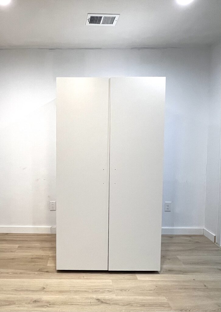 - Use a box under the swing doors to help you keep them level – When you are screwing the swing doors into the outer boxes, it feels like you need an extra couple of hands to keep it level and in place. Grab a few of the boxes and use them under the door to help keep it straight and at the right height as you screw.