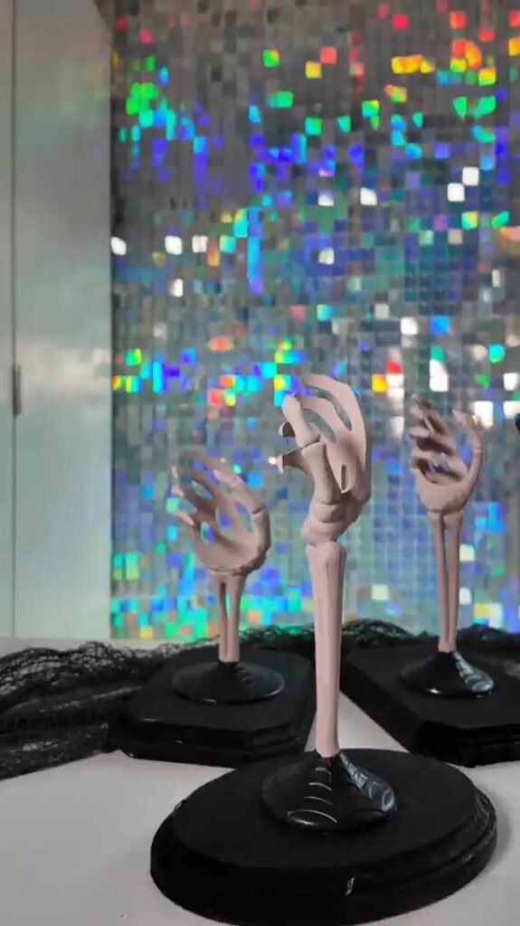 - Once everything is dry, you can simply add battery-powered candles and display your new DIY skeleton hand Halloween decor.
